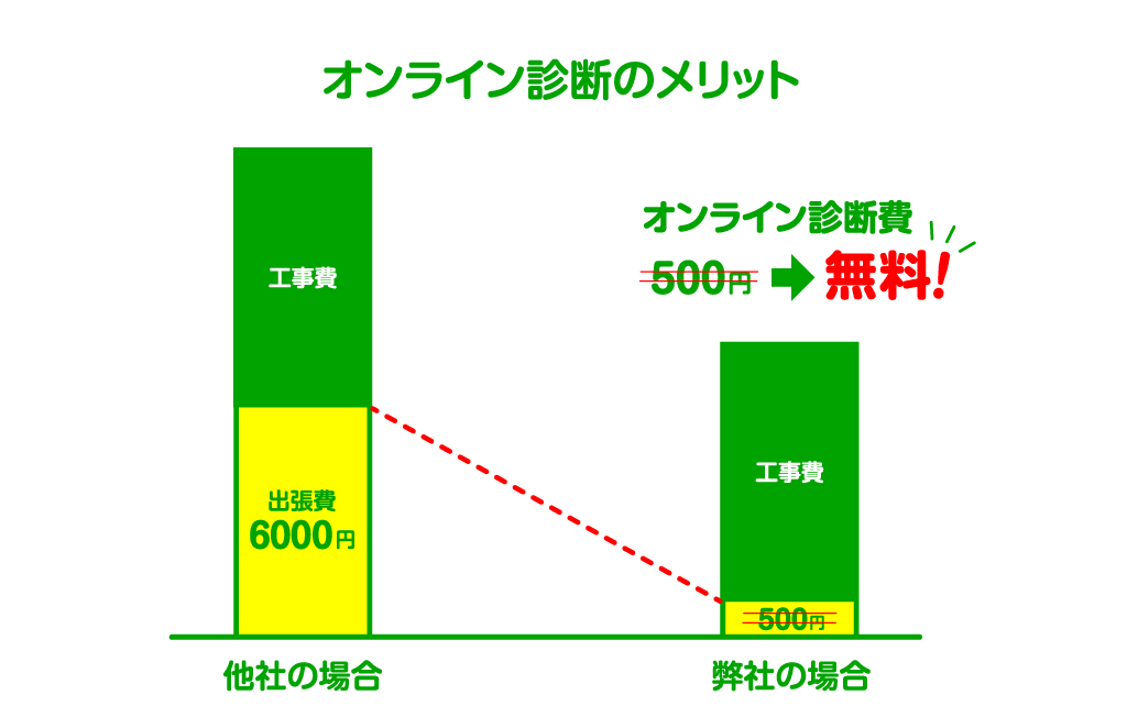 他社サービスでも見積りと別に発生してしまう出張費を大幅に節約できます。